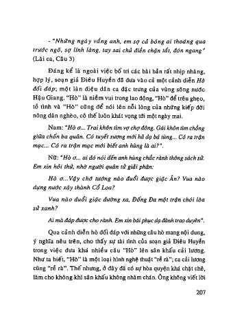 hợp lý, soạn giả Điêu Huyền đã đưa vào cả một cảnh diễn Hò