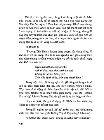 Trong một chập cải lương ngắn tác giả cũng sử dụng một số