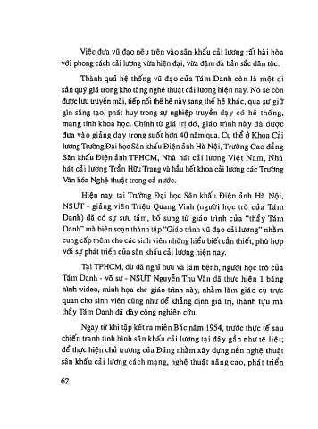 Danh” mà biên soạn thành tập “Giáo trình vũ đạo cải lương” nhằm